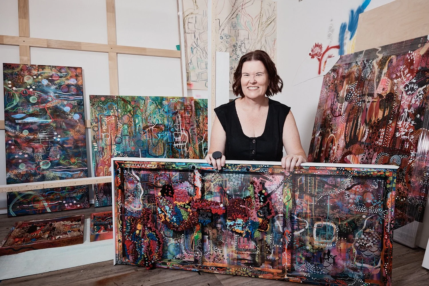 At the core of Rebecca Anne Brady's work lies raw imagination, transforming the Australian Landscape into vibrant and layered compositions. Each textile and mixed media work reveals a rich tapestry of experiences, merging personal stories with the essence of the environment.